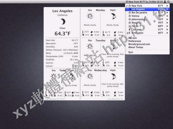• Temps v1.9.1 MacOSX 英文正式版(菜單欄氣象站和世界時鐘軟體)